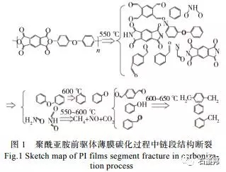 聚合物結(jié)構(gòu)演變在低溫?zé)峤饽さ倪^程首先進(jìn)行鏈段結(jié)構(gòu)斷裂和熱交聯(lián)反應(yīng),熱交聯(lián)反應(yīng)實(shí)現(xiàn)聚酰亞胺結(jié)構(gòu)重整。經(jīng)過多次試驗(yàn)分析發(fā)現(xiàn),聚酰亞胺結(jié)構(gòu)重整發(fā)生在550~700℃,此時聚酰亞胺 結(jié)構(gòu)中的亞胺環(huán)分解、醚鍵斷裂,生成的自由基發(fā)生熱交聯(lián)反應(yīng)形成穩(wěn)定的立體結(jié)構(gòu)。石墨邦 www.shimobang.cn —國內(nèi)首家碳石墨電商平臺 酰亞胺環(huán)的分解與醚鍵的斷裂造成結(jié)構(gòu)重排,形成交聯(lián)結(jié)構(gòu),由線性結(jié)構(gòu)逐步形成網(wǎng)絡(luò)結(jié)構(gòu)。逐漸形成六角碳環(huán)的多環(huán)芳環(huán)結(jié)構(gòu),進(jìn)一步稠環(huán)化轉(zhuǎn)化成平面網(wǎng)狀結(jié)構(gòu),形成碳微晶,進(jìn)而無序堆積成類石墨烯結(jié)構(gòu)。