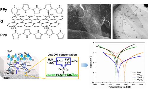 圖3.石墨烯雜化物的結(jié)構(gòu)與電鏡照片;雜化復(fù)合涂層的腐蝕防護(hù)機(jī)理與耐腐蝕性研究