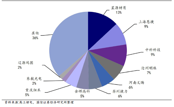 2016年,中國鋰電池隔膜出貨量前十名的企業(yè)市場占比達到63.50%,預計未來隨著各大企業(yè)在建產(chǎn)能的逐步投產(chǎn),市場集中度將進一步提升。