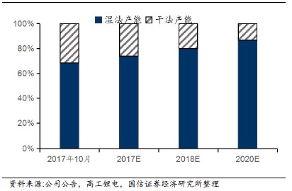 值得注意的是,目前已經(jīng)明確規(guī)劃將在2020年之前投產(chǎn)的新產(chǎn)能中,根據(jù)國信證券的統(tǒng)計,干法產(chǎn)能僅有4.7億平米新增產(chǎn)能(其中上市公司體系中明確投產(chǎn)的僅為2.3億平米),同期規(guī)劃將投產(chǎn)的濕法隔膜新增產(chǎn)能則達到67.9億平米。