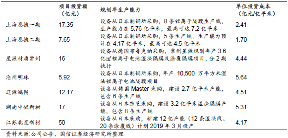 未來濕法隔膜產(chǎn)能投入遠超干法隔膜,因此國信證券主要分析濕法隔膜的工藝技術對企業(yè)生產(chǎn)效率和產(chǎn)品成本的影響。