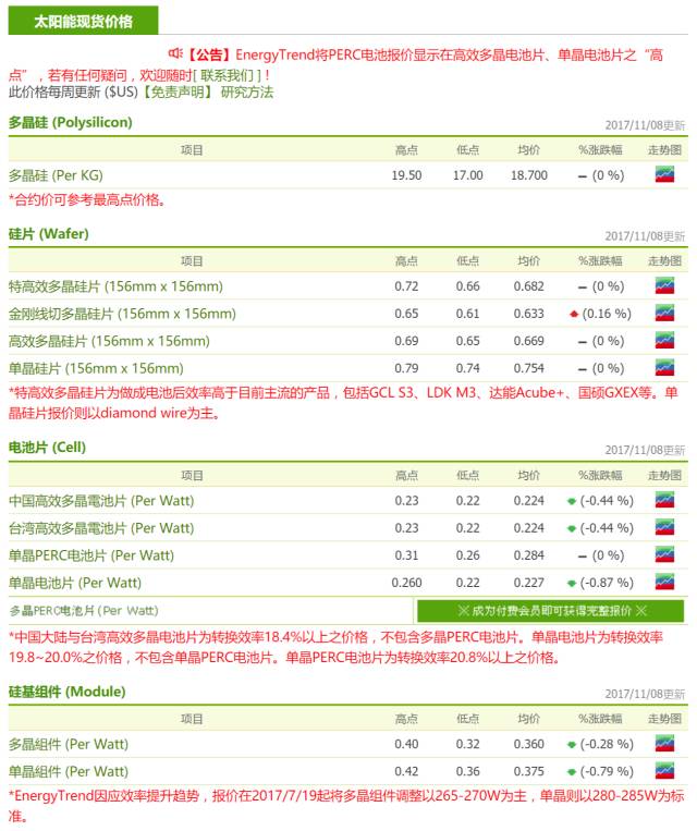 由于電池片價(jià)格大幅下跌與激烈競(jìng)爭(zhēng),帶動(dòng)了組件的跌價(jià)空間,中小型組件廠家可洽談的空間比例變高,造成市場(chǎng)均價(jià)再有著下滑趨勢(shì)。由于電池片的下跌主要在單晶電池片部份,因此組件的跌幅也是以單晶組件為主。