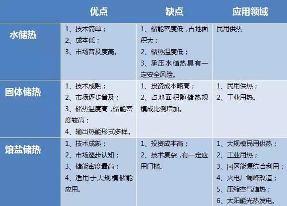 表:各種儲(chǔ)熱技術(shù)特點(diǎn)對(duì)比表