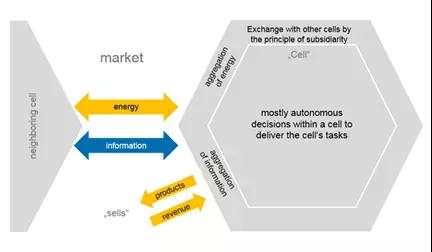 為了實(shí)現(xiàn)上述目標(biāo),必須在每個(gè)細(xì)胞結(jié)構(gòu)內(nèi)實(shí)現(xiàn)成熟的數(shù)據(jù)管理和安全防護(hù)系統(tǒng),對(duì)不同的信息、測量值、信號(hào)等進(jìn)行優(yōu)先排序和評(píng)估。如上圖所示,每一個(gè)細(xì)胞都已經(jīng)置身于能源市場中,在一個(gè)細(xì)胞里的所有互動(dòng)都是符合市場規(guī)律的。每一個(gè)細(xì)胞都向市場提供整合的信息,例如,每一個(gè)細(xì)胞能向市場提供多大的靈活性,從而作為可以在系統(tǒng)輔助服務(wù)市場出售的產(chǎn)品。相應(yīng)地,市場也會(huì)向每個(gè)細(xì)胞提供激勵(lì),例如通過價(jià)格信號(hào)?;诖?,每個(gè)細(xì)胞都可以自我決策,決定如何參與市場,如何通過市場交易提供怎樣的產(chǎn)品。而每出售出一個(gè)電力產(chǎn)品,細(xì)胞也可以獲得相應(yīng)的收益,從而提高了流動(dòng)性。通過購買價(jià)格最低的輔助服務(wù)產(chǎn)品,細(xì)胞內(nèi)部的購買方也可以降低成本。