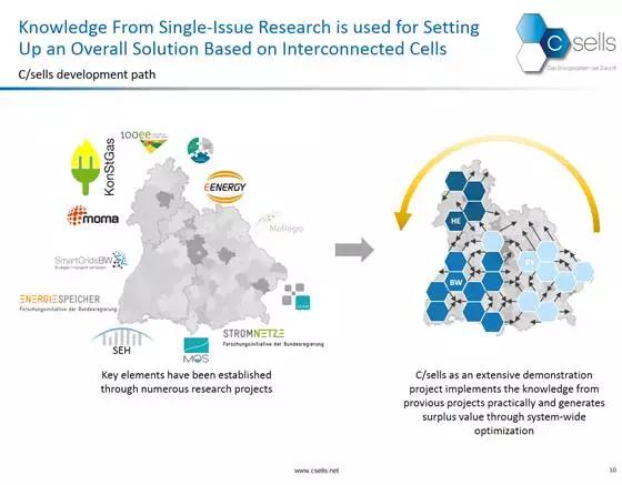 “C-sells”隸屬于在2016年12月正式啟動(dòng)的SINTEG項(xiàng)目(Smart Energy Showcases – Digital Agenda for the Energy Transition),是德國繼E-ENERGY六個(gè)示范項(xiàng)目后在能源互聯(lián)網(wǎng)方面的進(jìn)一步探索。E-Energy是2008年德國聯(lián)邦經(jīng)濟(jì)與能源部在智能電網(wǎng)的基礎(chǔ)上推出的一個(gè)為期4年的技術(shù)創(chuàng)新促進(jìn)計(jì)劃。它提出打造新型能源網(wǎng)絡(luò),在整個(gè)能源供應(yīng)體系中實(shí)現(xiàn)綜合數(shù)字化互聯(lián)以及計(jì)算機(jī)控制和監(jiān)測的目標(biāo)。E-Energy充分利用信息和通信技術(shù)開發(fā)新的解決方案,以滿足未來以分布式能源供應(yīng)結(jié)構(gòu)為特點(diǎn)的電力系統(tǒng)的需求。