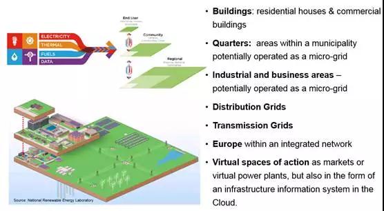 一個(gè)“細(xì)胞結(jié)構(gòu)”的基本功能是為位于其中的用戶供應(yīng)能源,將來還需要進(jìn)一步開發(fā)供能系統(tǒng)的靈活性。而多能互補(bǔ)(電,熱,交通等)可以實(shí)現(xiàn)一個(gè)細(xì)胞結(jié)構(gòu)內(nèi)的整體優(yōu)化。該細(xì)胞結(jié)構(gòu)可以通過分布式能源、生產(chǎn)者與消費(fèi)者之間的互動(dòng),應(yīng)對(duì)電網(wǎng)日益增長的復(fù)雜性。能源流和IT設(shè)施將不同基礎(chǔ)元素連接起來,保證信息和能源的安全流動(dòng)互通。
