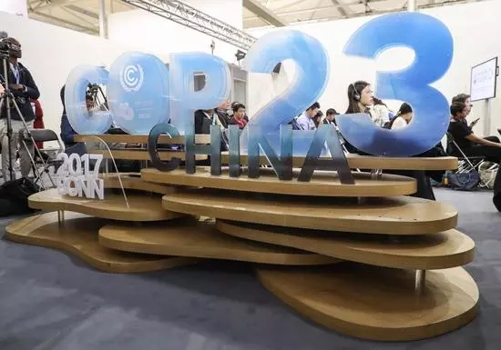德國波恩聯(lián)合國氣候變化大會“波恩園區(qū)”內(nèi)拍攝的中國展館一角。新華社記者 單宇琦攝