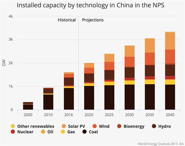 到2040年,預(yù)計中國將增加的發(fā)電量相當(dāng)于整個美國電力系統(tǒng)的發(fā)電量。國際能源機構(gòu)預(yù)計,根據(jù)目前的政策,中國的煤炭消費量在未來幾年將達到高峰,到2040年將下降15%。中國的電動車投資也將占全球的40%以上。