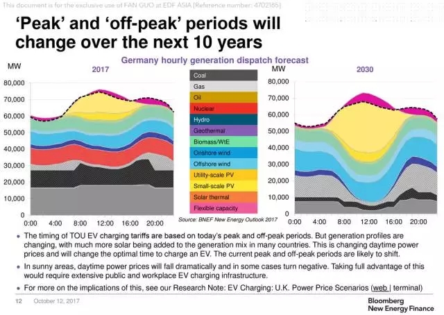 4、隨著光伏發(fā)電成本的下降,尤其小型分布式發(fā)電的滲透,目前的大多數(shù)分時電價的峰時時段將發(fā)生改變。特別是陽光充足的地方,谷時時段會轉(zhuǎn)移到中午,也就意味著需要建設更多的公共充電設施或公司專用充電設備來充分利用該充電時段。