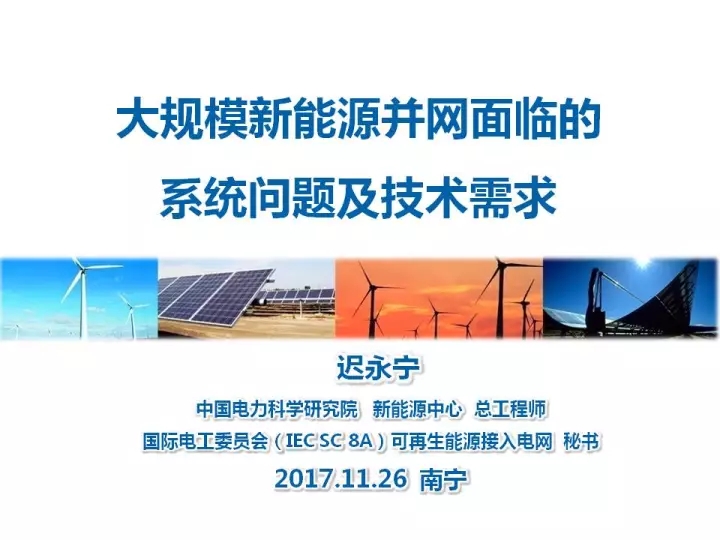中國儲能網(wǎng)訊:日前,中國電科院新能源中心總工程師遲永寧教授作了題為“大規(guī)模新能源并網(wǎng)面臨的系統(tǒng)問題及技術需求”的報告,經(jīng)中國電機工程學會及專家本人授權,分享給大家。