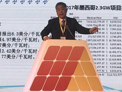 按照會議議程我來給大家做個匯報,簡單介紹下背景,我要講的是全球的趨勢,作為企業(yè)家來講,考慮光伏產(chǎn)業(yè)的發(fā)展,首先要分析的應(yīng)該是大勢,就像下圍棋一樣,要看大勢,大勢怎么樣,未來長期會怎么樣?全球的大勢所趨必須是發(fā)展可再生能源,可再生能源里最重要的要數(shù)光伏。目前在經(jīng)濟方面離不開三個主題,幾乎已經(jīng)成為全球共識,“巴黎協(xié)定”現(xiàn)在有176個國家已經(jīng)有發(fā)展綠色能源的政策目標(biāo),制定上網(wǎng)電價的有100多個國家。等等一系列數(shù)據(jù)反映了一個問題,就是發(fā)展光伏已經(jīng)成為全球多數(shù)國家的國家意志,這已經(jīng)是一種大勢所趨的發(fā)展潮流,不可逆轉(zhuǎn),事實也證明了這一點。我們國家用電量的需求和GDP彈性系數(shù)在1左右,換而言之就是GDP增長6%,用電量也增長6%,電能不能大容量儲存,就形成了一個很大的發(fā)展空間,需要發(fā)展,就要裝機,但是國家現(xiàn)在控煤,大力發(fā)展非水可再生能源,這就給光伏創(chuàng)造了很好的市場前景。這個市場空間光伏能不能占得呢?十年時間光伏降了90%的價,光伏在世界范圍內(nèi)的招標(biāo)已經(jīng)低至1毛1了,過去光伏是只有錢人玩得起的,隨著降價速度的加快,越來越多的國家可以參與進來了,使光伏大規(guī)模推廣變?yōu)榭赡堋?
