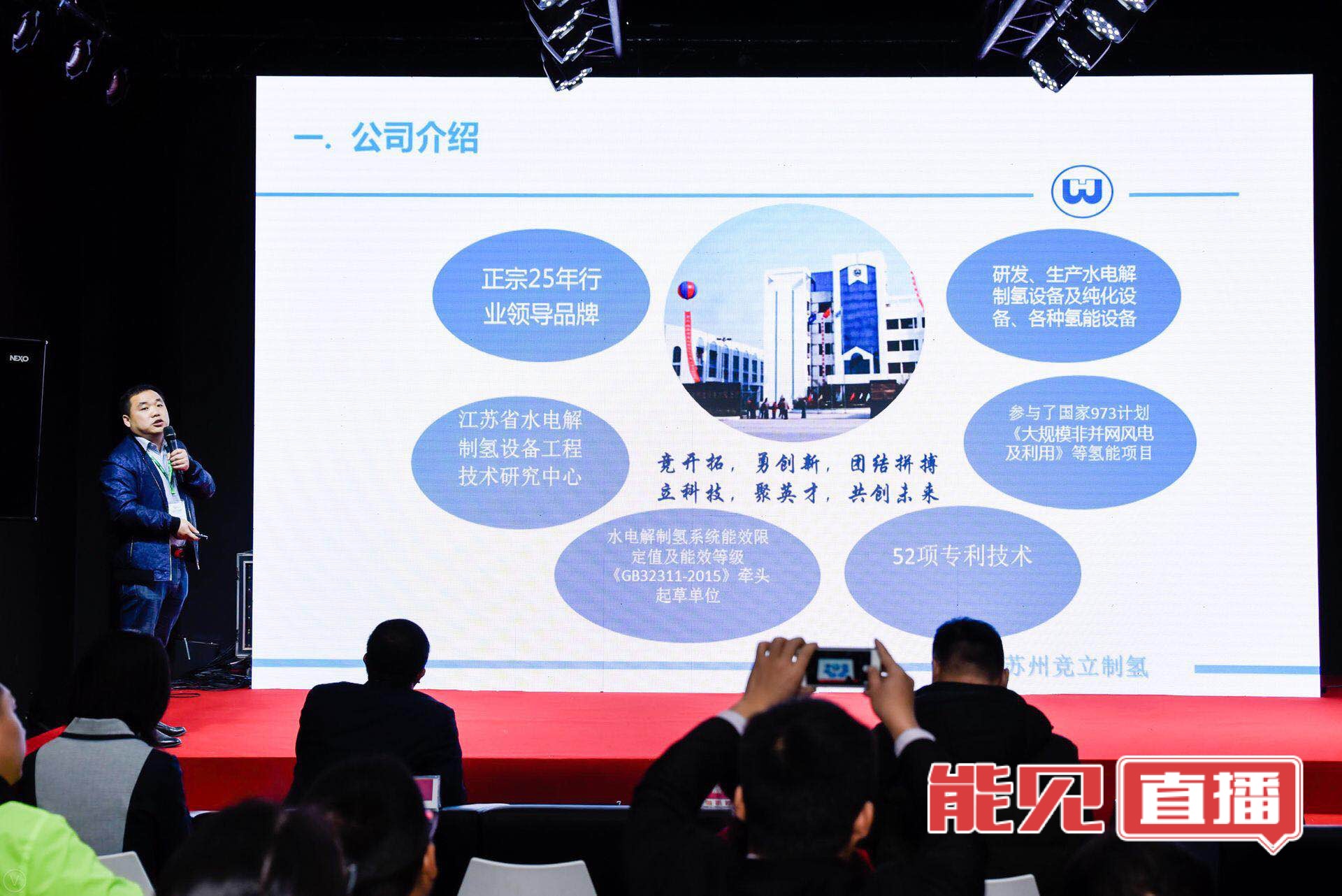 蘇州競(jìng)立制制氫設(shè)備有限公司總經(jīng)理助理董太明分享了節(jié)能型水電解制氫裝置與可再生能源的配套應(yīng)用。