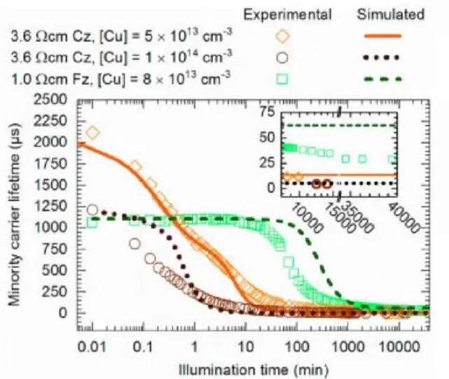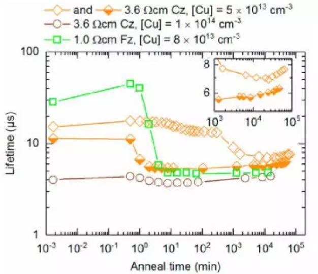 圖四 銅摻雜的Cz硅和Fz硅中少子壽命