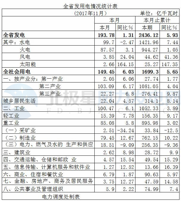 十一月份全省電力運(yùn)行情況