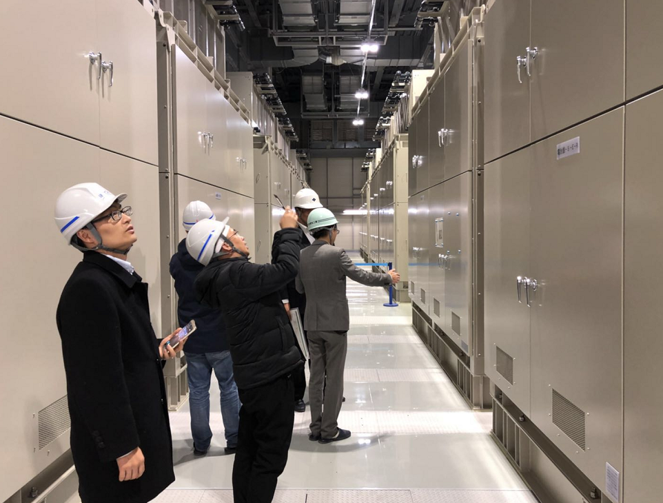 調(diào)研團專家在北海道15MW/60MWH全釩液流電池儲能電站現(xiàn)場交流