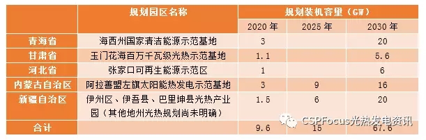 受行業(yè)良好發(fā)展形勢和支持政策明確的帶動(dòng),截止目前,青海省、甘肅省、河北省、內(nèi)蒙古自治區(qū)和新疆自治區(qū)等相關(guān)省份和地區(qū)所規(guī)劃的光熱發(fā)電裝機(jī)容量到2020年合計(jì)為9.6GW,到2030年合計(jì)為67.6GW。