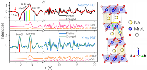 圖2.P3-Na0.6[Li0.2Mn0.8]O2初始態(tài)和充電態(tài)nPDF及xPDF對(duì)比分析