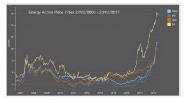 隨著供應穩(wěn)定性不斷減弱,電價卻在不斷上升。2017年初部分地區(qū)電價甚至出現(xiàn)接近20%的激增。