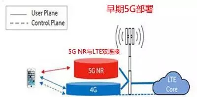 NSA非獨立部署,即利用現(xiàn)有的LTE 無線接入網(wǎng)和核心網(wǎng)新增5G 新無線,采用與LTE雙連接的部署方式。