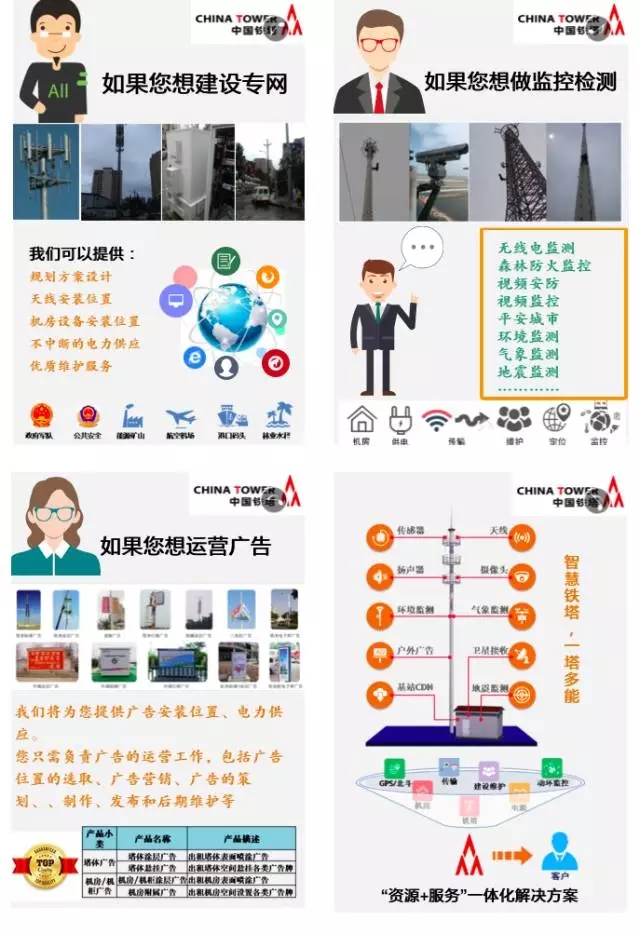 我們看到中國鐵塔的一些新業(yè)務(wù)宣傳,包括通信專網(wǎng),森林防火、海事、環(huán)保監(jiān)控,衛(wèi)星信號增強,“一桿多用”智慧桿等等。