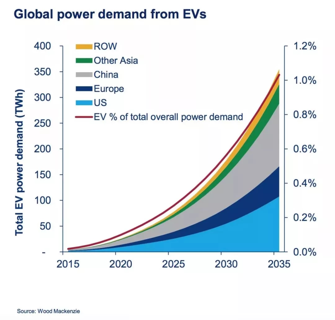 中國儲能網(wǎng)訊:全球權威能源行業(yè)咨詢公司伍德·麥肯茲(Wood Mackenzie)日前發(fā)布關于電動汽車市場的調(diào)查報告。調(diào)研相信,到2035年,路上行駛的電動汽車會從當前的200多萬輛上漲到1.25億輛。