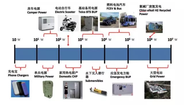 圖 3 不同功率的燃料電池應(yīng)用領(lǐng)域