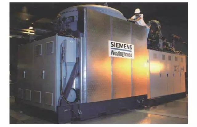 管式 SOFC 是最早被研究也是目前最接近商業(yè)化的發(fā)電技術(shù)。2002 年 5 月,西門子西屋公司與加州大學(xué)合作,在加州安裝了第 1 套 SOFC 與氣體渦輪機(jī)聯(lián)動(dòng)發(fā)電系統(tǒng)(圖 10)[16],能量轉(zhuǎn)化效率高達(dá) 58%。除了西屋公司外,日本三菱重工長(zhǎng)崎造船所、九州電力公司和東陶公司、德國(guó)海德堡中央研究所等也進(jìn)行了 kW 級(jí)管狀結(jié)構(gòu) SOFC 發(fā)電試驗(yàn)。