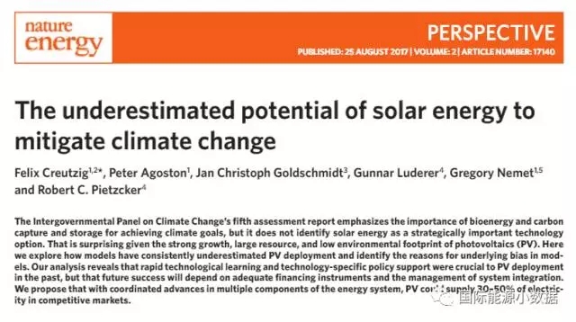 中國儲能網(wǎng)訊:德國墨卡托研究所(Mercator Research Institute)的研究人員在最近一期《自然·能源》雜志上發(fā)表題為“The underestimated potential of solar energy to mitigate climate change”(太陽能減緩氣候變化的潛力被低估)。在這篇文章中展示了下面的曲線圖: