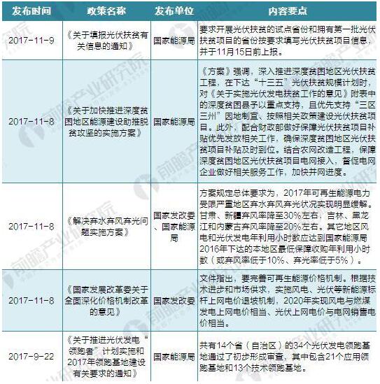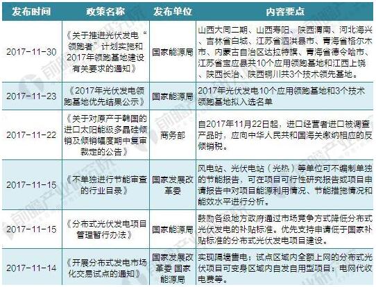 圖表1:2017年11月我國光伏發(fā)電政策匯總及解讀(一)