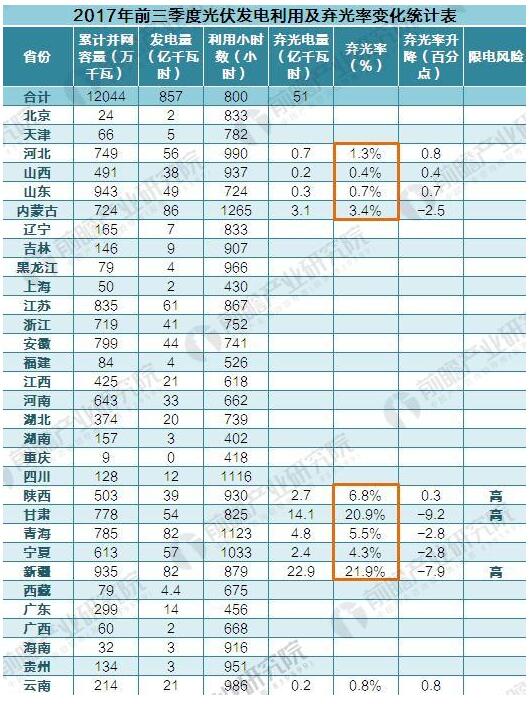 我國棄光現(xiàn)象主要集中在西北五省(區(qū))和東部地區(qū)。根據(jù)國家能源局發(fā)布的最新統(tǒng)計(jì)數(shù)據(jù)顯示,2017年前三季度,我國光伏發(fā)電的利用水平有所提升。