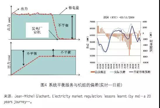 ? 因此,在競爭性市場,機(jī)組(或 者機(jī)組組合在一起)享受“平衡服務(wù)”, 其原因必然是自身的實(shí)際出力相比較自己 的承諾,產(chǎn)生了額外導(dǎo)致系統(tǒng)不平衡的“偏 差”。這一偏差的彌補(bǔ)(由調(diào)度統(tǒng)一管理), 如果意味著額外的平衡成本(偏差也有好壞之分,與總的偏差符號相反的偏差有助 于系統(tǒng)平衡,見圖 4),需要由引發(fā)偏差的 機(jī)組承擔(dān),而系統(tǒng)運(yùn)行者需要各種備用去 應(yīng)對這種不平衡。在可再生能源發(fā)展的初 期,往往是出于積累經(jīng)驗(yàn)的需要而免除它 的這一責(zé)任。但是目前,越來越多的新建 風(fēng)電與大型光伏項(xiàng)目已經(jīng)開始直接參與市 場,并且承擔(dān)平衡責(zé)任。預(yù)測的準(zhǔn)確率不 高,出現(xiàn)大的出力偏差,往往意味著極高的收益損失(2),甚至是虧損。