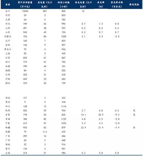 國家能源局統(tǒng)計的去年前三季度風(fēng)電和光伏利用及棄風(fēng)率統(tǒng)計表(注:棄光率升降是與2016年全年對比結(jié)果)。