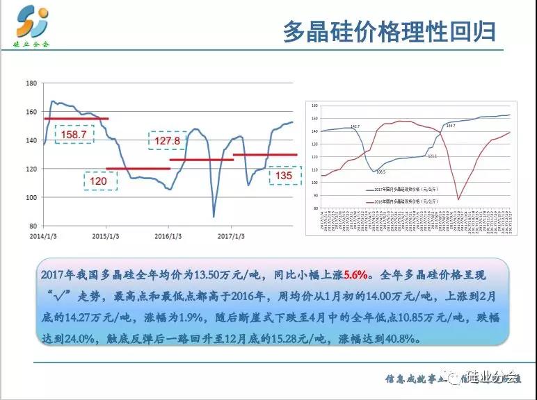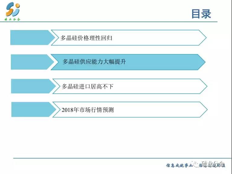 預(yù)測2018全年基本上供需平衡,特別是上半年,而下半年出現(xiàn)供大于求的失衡狀態(tài)。但是產(chǎn)品呈現(xiàn)分化,單晶硅料緊張,產(chǎn)品價格出現(xiàn)明顯差距。