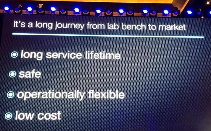 主流的鋰電池技術(shù)顯然是有這樣、那樣的問題,目前Donald Sadoway的研究團(tuán)隊(duì)也在研究。但是,他認(rèn)為這樣的一個(gè)技術(shù)在短期內(nèi)不會(huì)看到突破性的進(jìn)展,還需要一定的時(shí)間去做研發(fā)的突破。此外,就是誰來出錢做研發(fā)的問題,這需要有一些沒有偏見的,能夠?qū)Ω锩缘募夹g(shù)有熱忱的資金投入進(jìn)來,要想取得突破,也意味著伴隨風(fēng)險(xiǎn),所以需要有遠(yuǎn)見卓識(shí)的資本加入,和技術(shù)探究結(jié)合來進(jìn)行突破。
