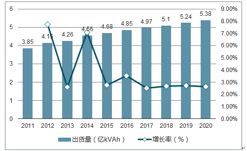 從全球鉛酸蓄電池供給來看,2015 年鉛酸蓄電池出貨量較上年增長 2.75%,出貨量達到 4.68 億 kVAh,預(yù)計未來 5 年出貨量將維持 2%-3%之間的增長速度。