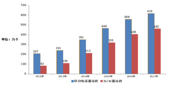 2012-2017年移動(dòng)電話基站發(fā)展情況