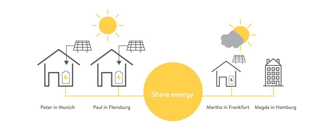 在德國,大約2萬個家庭已經(jīng)加入了Sonnen發(fā)起的項目,將自發(fā)電的住宅相互連接起來。在Sonnen的虛擬網(wǎng)絡中,各家庭能夠以較低的成本相互購買和出售多余的能源。