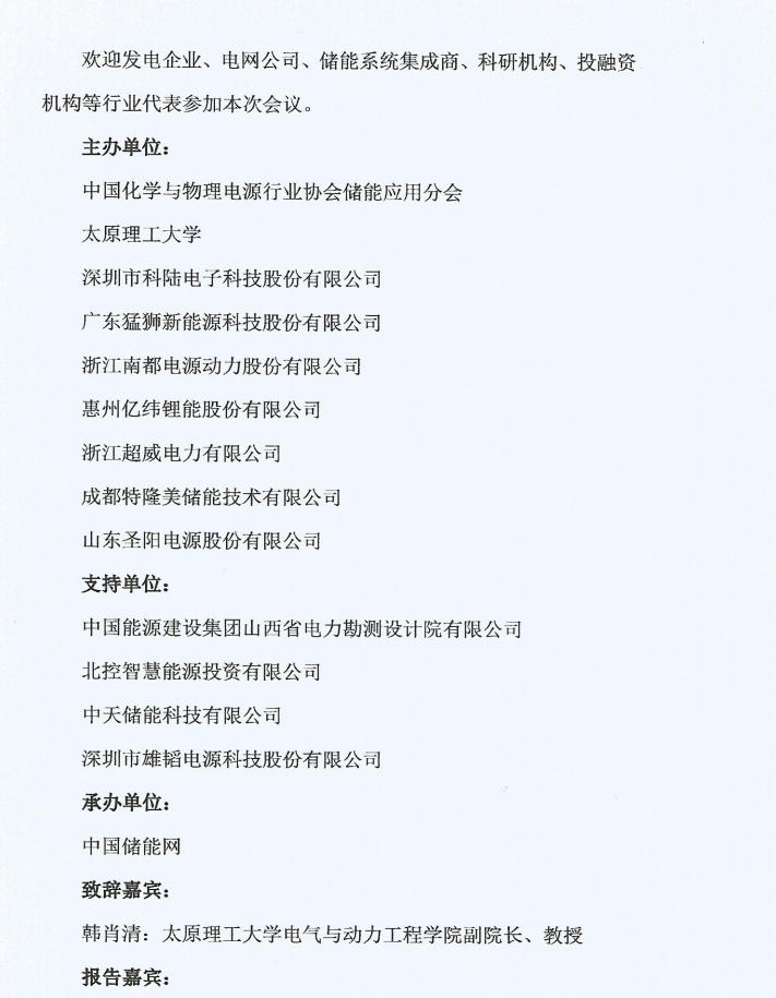 歡迎發(fā)電企業(yè)、電網(wǎng)公司、儲能系統(tǒng)集成商、科研機(jī)構(gòu)、投融資機(jī)構(gòu)等行業(yè)代表參加本次會議。
