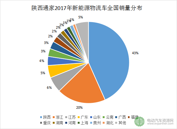 通家很早就進入了新能源物流車領(lǐng)域,2017年拿下細分市場的銷量冠軍,通家2017年在全國24個省市有銷量,主要市場在通家的大本營,陜西,其次是浙江。江蘇、廣東、山東、云南、廣西、福建、重慶、湖南、河南、上海等地銷量過百。
