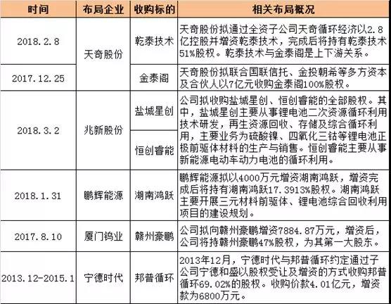 除了邦普循環(huán)、贛州豪鵬兩大回收領(lǐng)軍企業(yè)相繼被寧德時代、廈門鎢業(yè)控股后。近期,鵬輝能源、兆新股份、天奇股份都擬通過資本市場將湖南鴻躍、鹽城星創(chuàng)、恒創(chuàng)睿能、金泰閣、乾泰技術(shù)等第三方電池回收企業(yè)收入囊中。