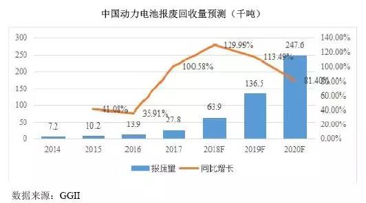 ?、提前卡位企業(yè)將率先受益。根據(jù)GGII最新動力電池報廢回收數(shù)量預(yù)測,2018年-2020年預(yù)計國內(nèi)動力電池報廢的在6.39萬噸、13.65萬噸、24.76萬噸,回收市場未來一定是百億級規(guī)模產(chǎn)業(yè)。而隨著未來動力電池市場集中度的進一步提升和競爭加劇,率先布局動力電池回收利用者將更能搶占市場先機。