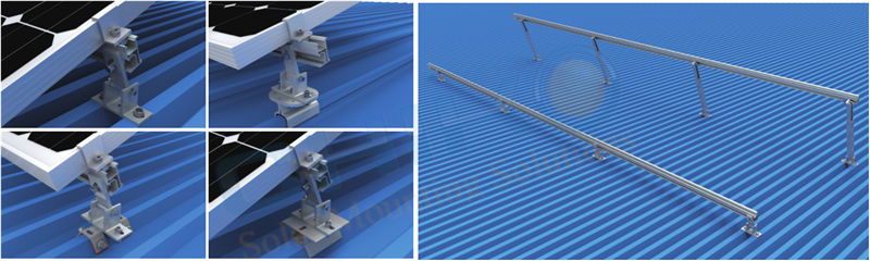 對于彩鋼瓦屋頂不朝陽的情況,晨科彩鋼瓦傾斜支架就是這樣一款設(shè)計用于不同朝向彩鋼瓦屋面的光伏支架系統(tǒng)。該款支架最大的優(yōu)勢在于能解決屋面朝向的不同,不破壞屋面自防水系統(tǒng),利用該系統(tǒng)的前后腳來達到最佳日照角度,根據(jù)客戶需求,實現(xiàn)太陽能板與屋面的持平或者高于屋面。這樣一來,雖然屋頂是不朝南的,但是在該支架系統(tǒng)的作用下,可以使電站矩陣朝南,獲取足夠的日照,從而實現(xiàn)發(fā)電量最大收益。