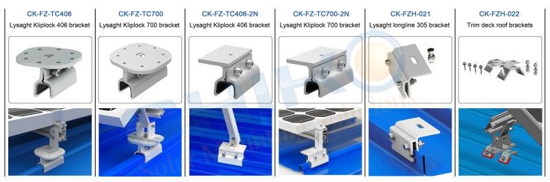 晨科太陽能擁有一支集鈑金設(shè)計、結(jié)構(gòu)設(shè)計、土木工程為一體的綜合研發(fā)隊伍,能夠根據(jù)實際施工要求,提出最為實用性價比最好的解決方案。傾斜光伏支架系統(tǒng)使用不同類型的彩鋼瓦夾具與屋面獨特的連接設(shè)計,使安裝方便快捷;且不同彩鋼瓦屋面結(jié)構(gòu)對應(yīng)不同的夾具,夾具與彩鋼瓦匹配越佳支架安裝越牢固。從這點也體現(xiàn)了該款傾斜支架的靈活性和通用性。