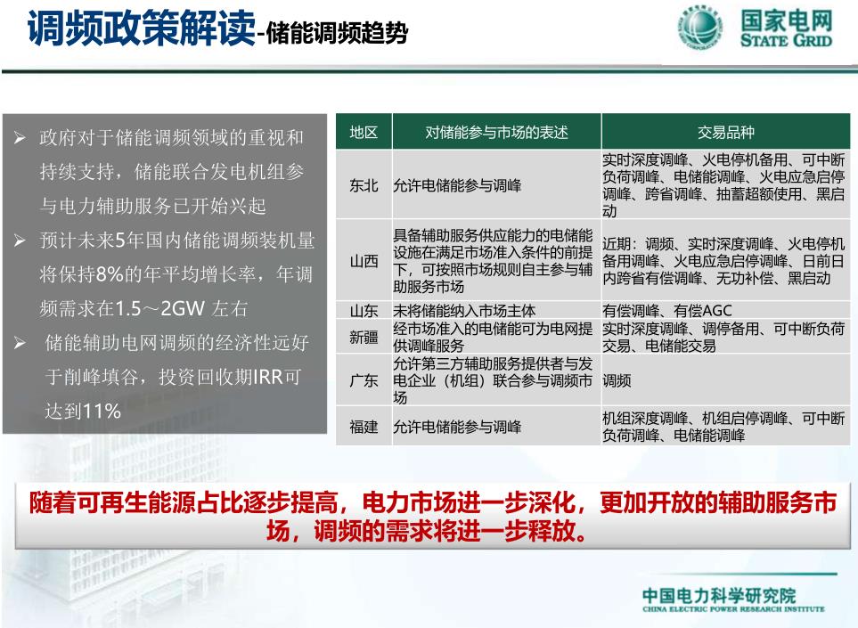 1.在當(dāng)?shù)卣蛧?guó)家政策指導(dǎo)下,電儲(chǔ)能參與調(diào)頻市場(chǎng)極大,值得關(guān)注。凡是有“兩個(gè)細(xì)則”能管住的地方,都是有需求的地方。