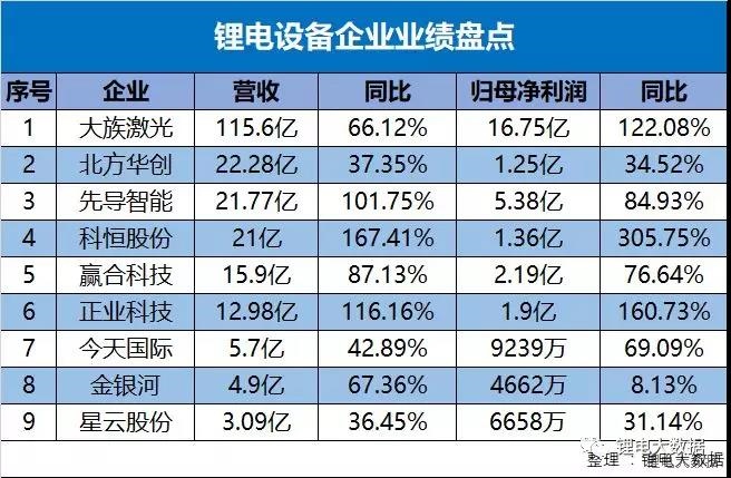 中國(guó)儲(chǔ)能網(wǎng)訊:新能源行業(yè)發(fā)展迅猛,對(duì)于身處其中的企業(yè),一方面享受到了行業(yè)發(fā)展的紅利,另一方面也面臨日益增大的競(jìng)爭(zhēng)壓力,各中滋味只有自己才能明白。不過,受益于鋰電行業(yè)需求的高速增長(zhǎng),設(shè)備企業(yè)普遍發(fā)展勢(shì)頭良好,下面盤點(diǎn)9家鋰電設(shè)備上市公司的業(yè)績(jī)以及盈利情況,并進(jìn)行對(duì)比分析。