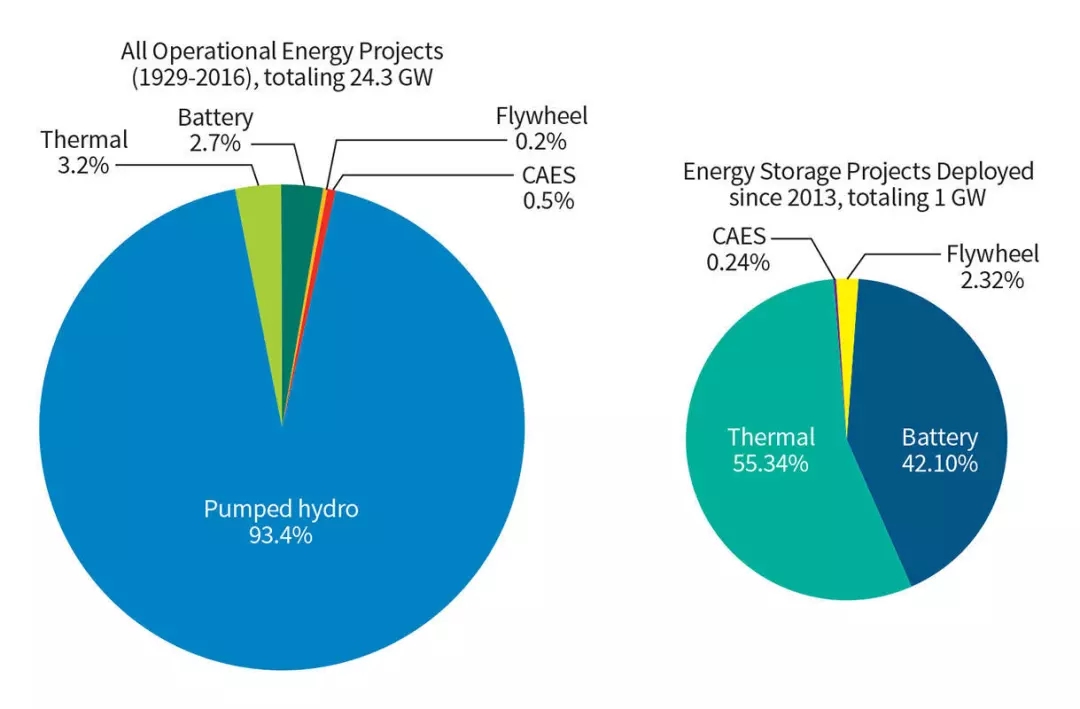 事實(shí)上,當(dāng)今使用的最普遍的ESS技術(shù)是抽水蓄能,飛輪,超級(jí)電容器,超導(dǎo)磁能存儲(chǔ)器(SMES)和電池。從2013年到2016年,電池是儲(chǔ)能市場(chǎng)的主力,未來的增長(zhǎng)似乎將集中在電池領(lǐng)域。在美國(guó),ESS的最大用戶是電力公用事業(yè)單位; 它們占自2013年以來總部署容量的90%,工商業(yè)用戶占9%,住宅僅占1%。