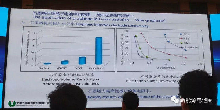 之所以選擇石墨烯一個最根本原因是由于石墨烯有著最小的體積電阻率,作為導電劑使用能夠大幅降低極片體電阻率。