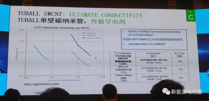 第三個要報告來自O(shè)CSiAl 公司的SWCNT在鋰電中的應用