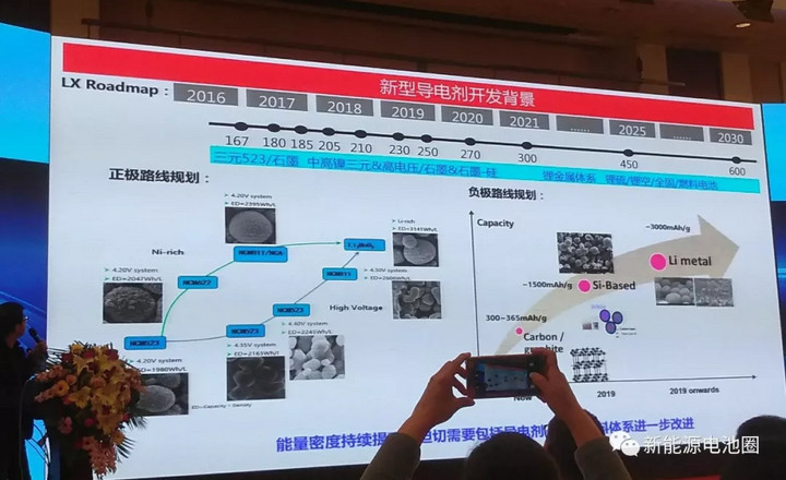 展示了力信技術(shù)路線圖,當下能量密度的提升迫切需要包括導電劑在內(nèi)的材料體系的進一步改善。