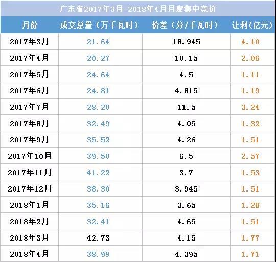值得注意的是2017年7月,江蘇省把上網(wǎng)電價0.378元/千瓦時上調(diào)至0391元/千瓦時,升幅0.013元/千瓦時。然而,隨后月競價差似乎也沒多大波動,而近兩次月競成交價差為0.013元/千瓦時。江蘇2017年3月至2018年4月月競總讓利6.33億元,僅為廣東月競總讓利總數(shù)的24%。